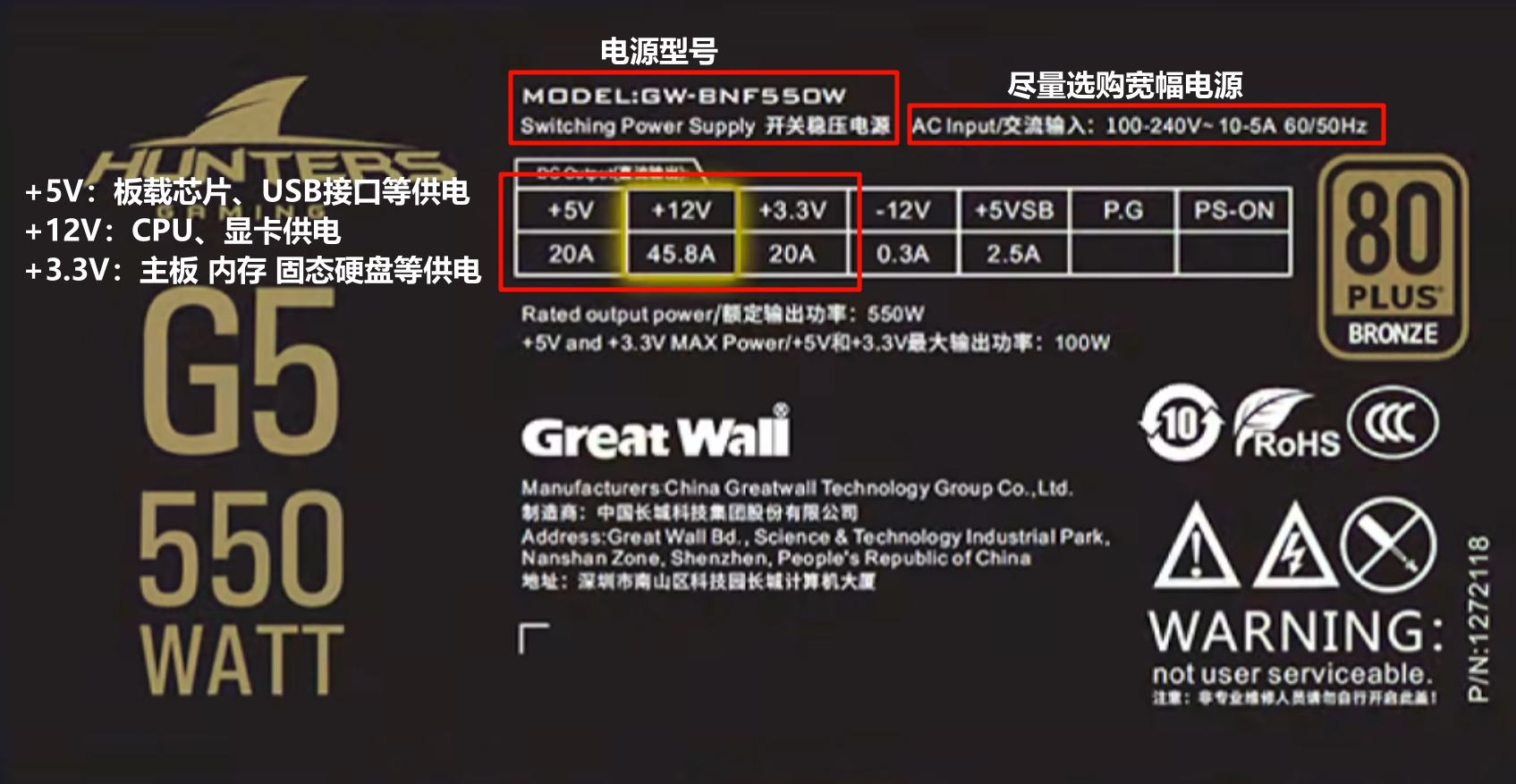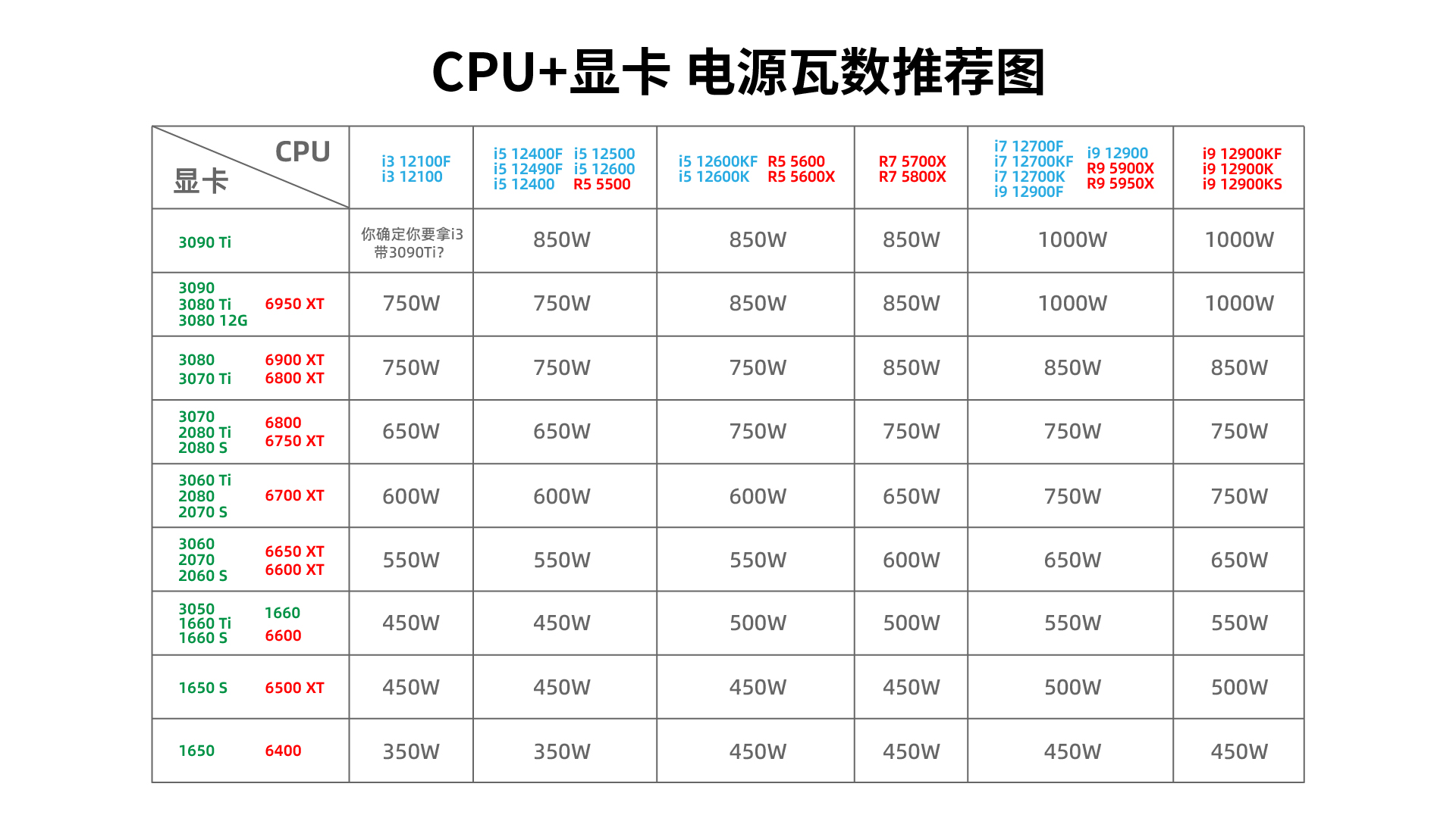 因此选购电源时主要看的就是这两个部件的功耗。一般将 CPU 与显卡最大功耗之和计算整机最大功耗。