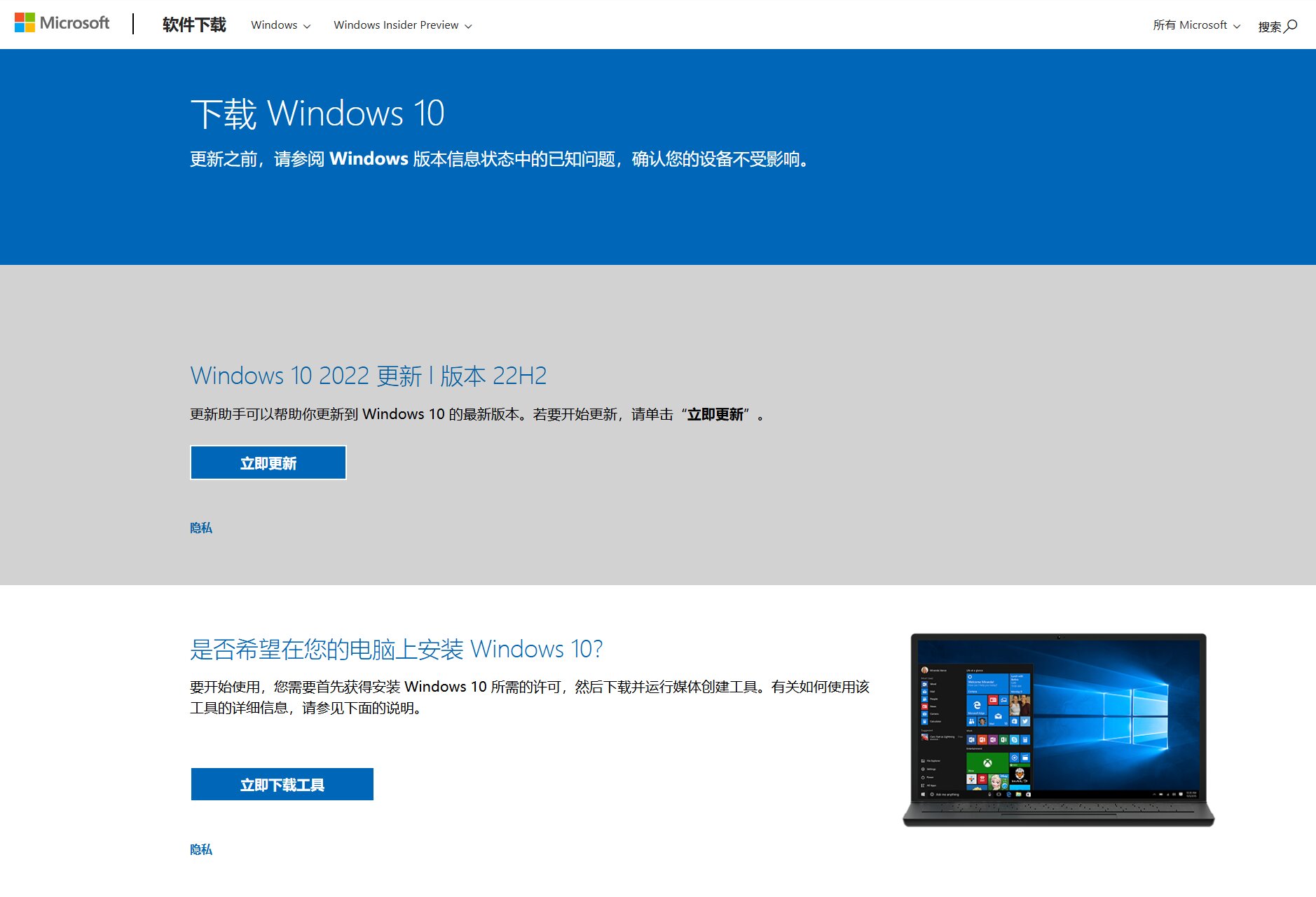 Win10下载地址:https://www.microsoft.com/zh-cn/software-download/windows10