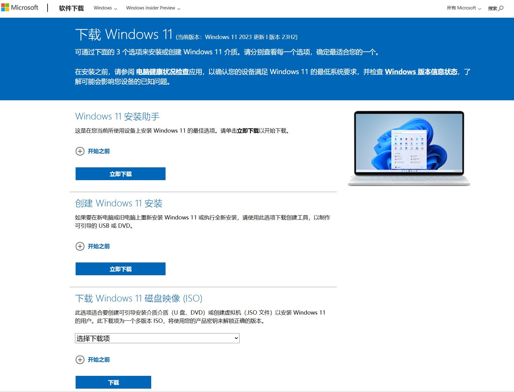 Win11下载地址:https://www.microsoft.com/zh-cn/software-download/windows11