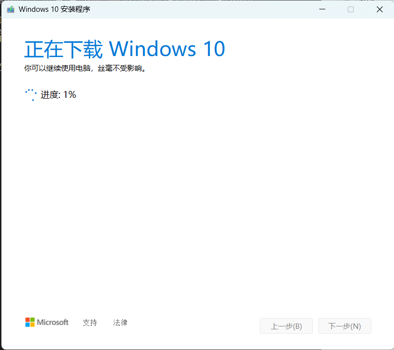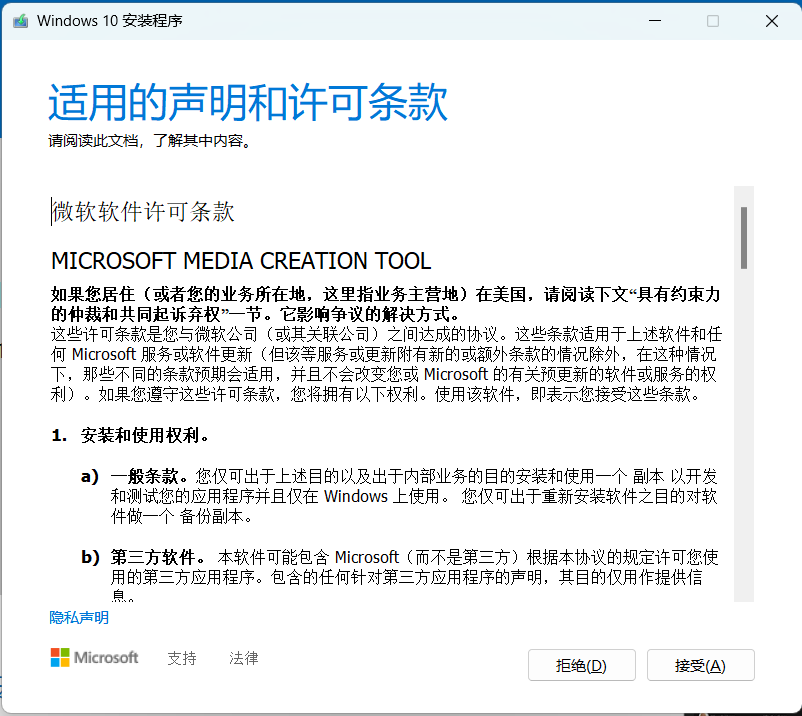 下载完成后,运行MediaCreationTool_22H2.exe,等待一会,看到许可条款时,点击右下角的接受按钮