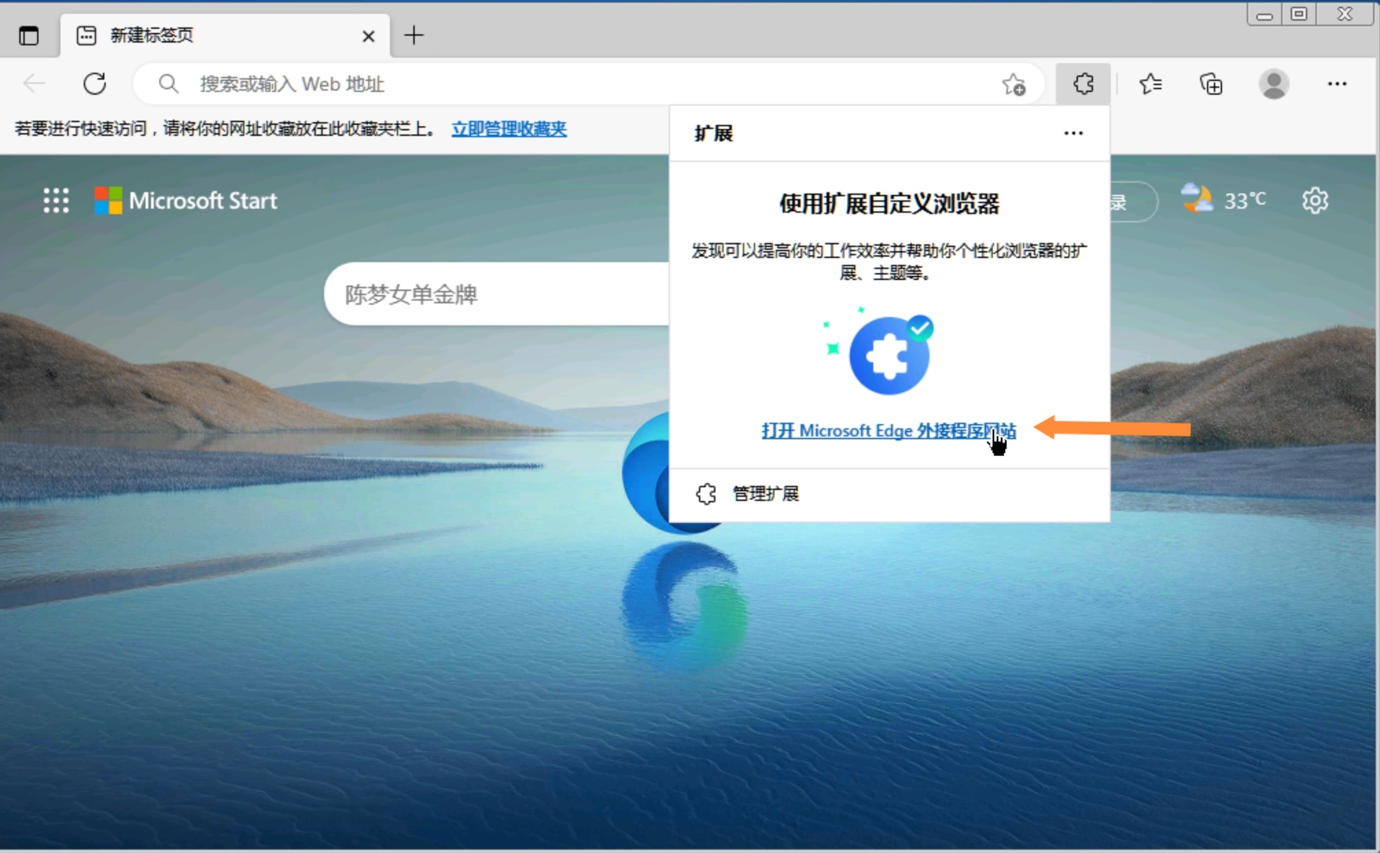 接下来点击 弹窗下方的蓝字 ,进入扩展商店。(也可以点击上方链接进入)
