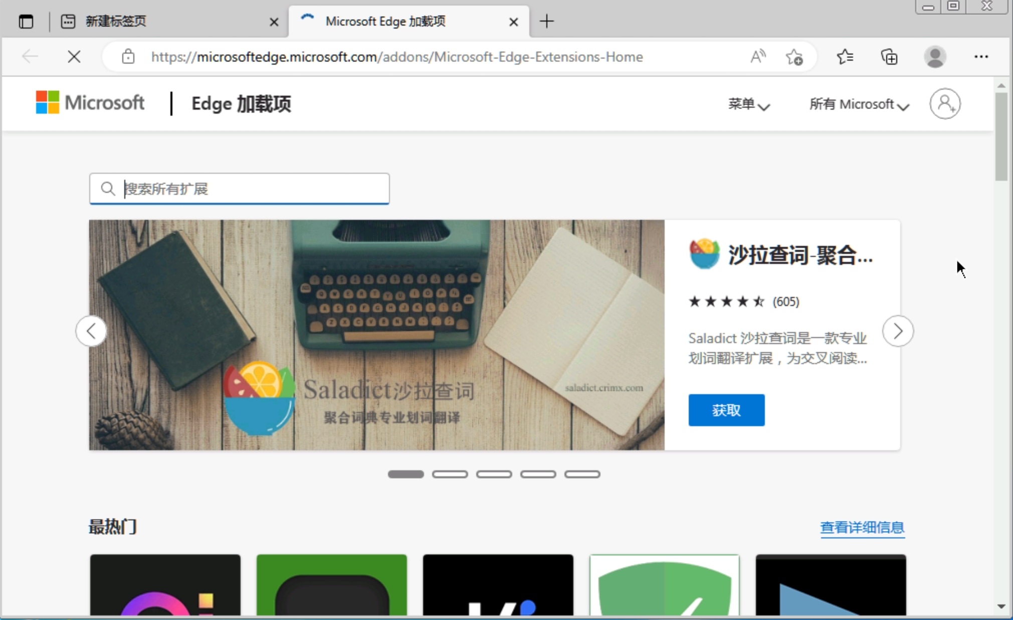 进入扩展商店后,你便可以寻找需要的扩展了,找到后点击 获取 即可下载并安装。