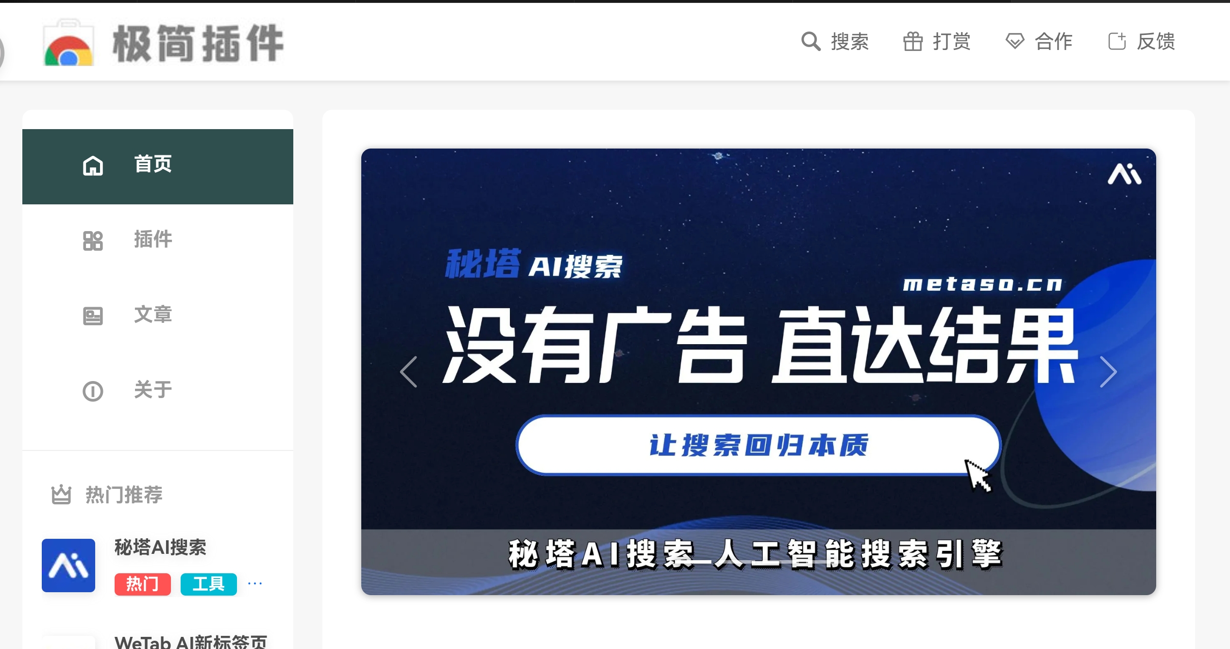 你需要从其它网站下载扩展,如:极简插件(下图为其主页) ,找到需要的扩展并下载。