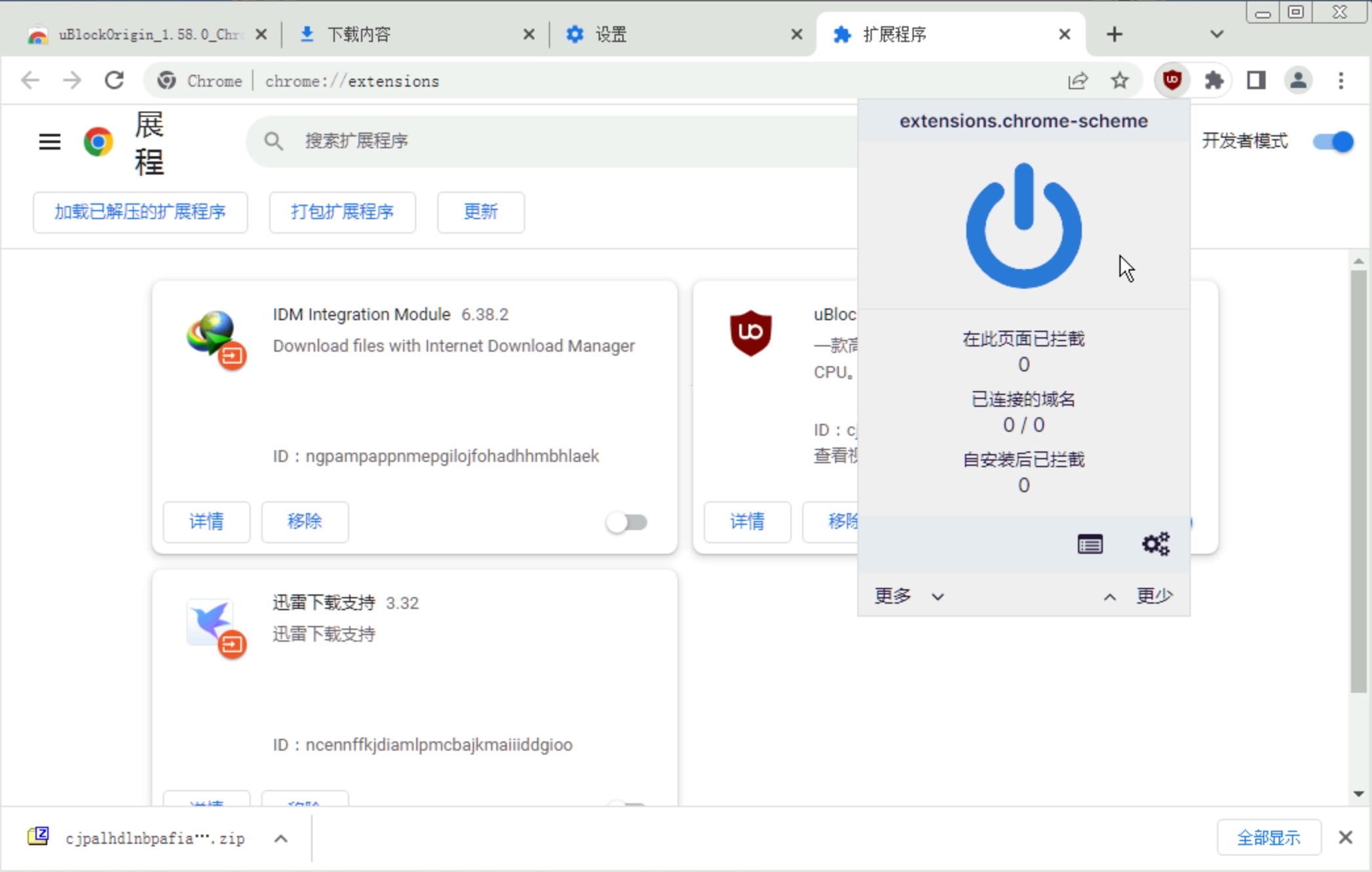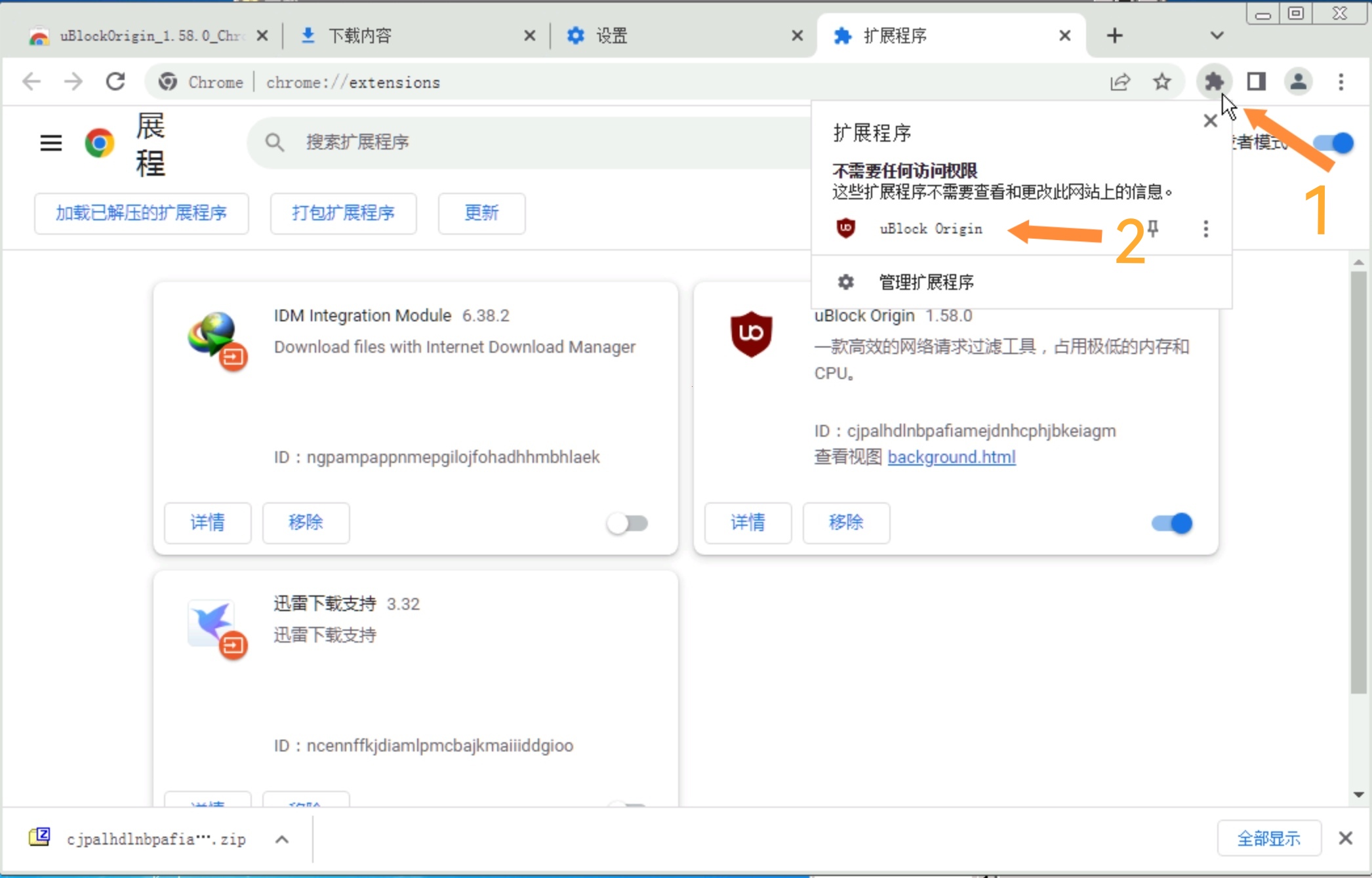 一些插件拥有自己的窗口用于控制,以下用 Chrome 为例演示如何打开它们。