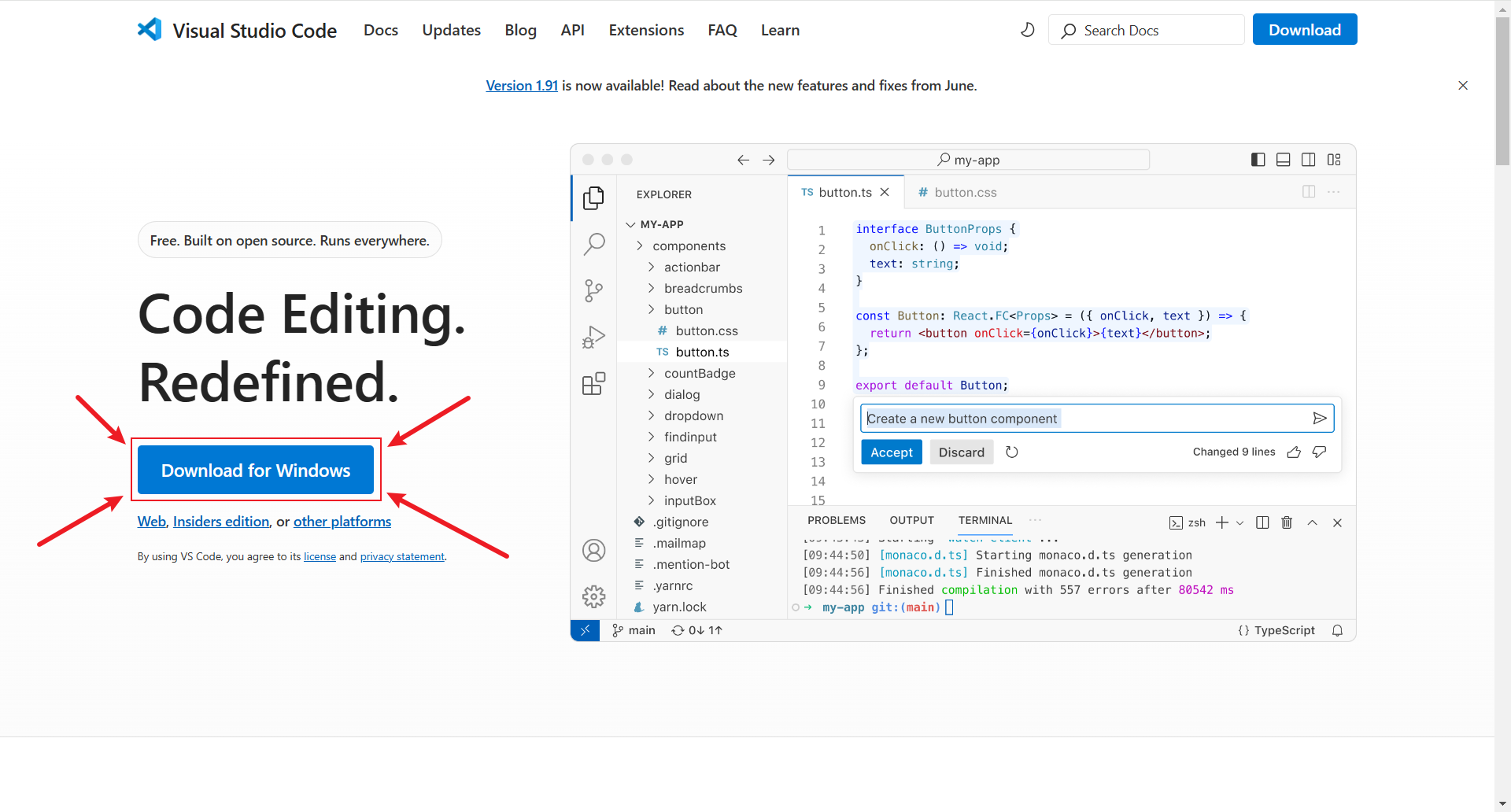 1 首先打开 vscode官网,单击 Download for Windows 按钮,开始下载。下载过程可能稍慢,请耐心等待