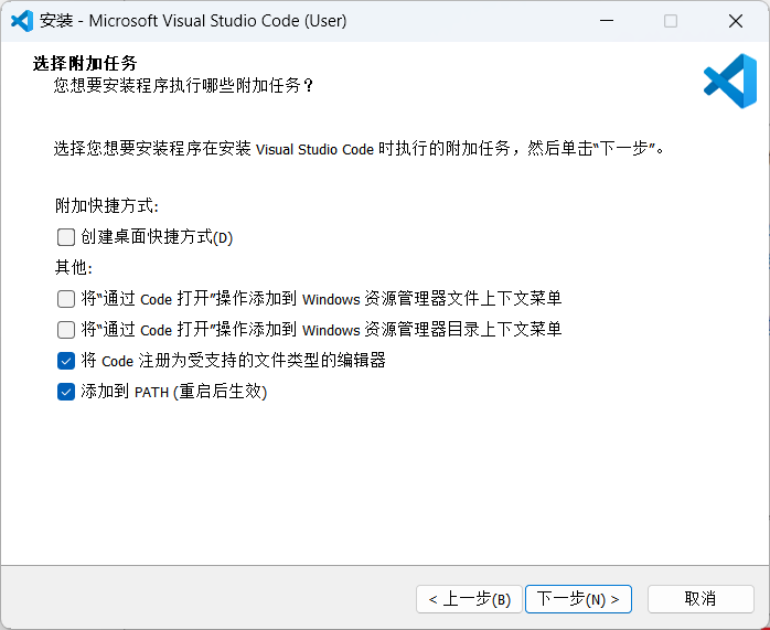 3 如果您希望从桌面直接打开 vscode,则需勾选 创建桌面快捷方式,否则不用