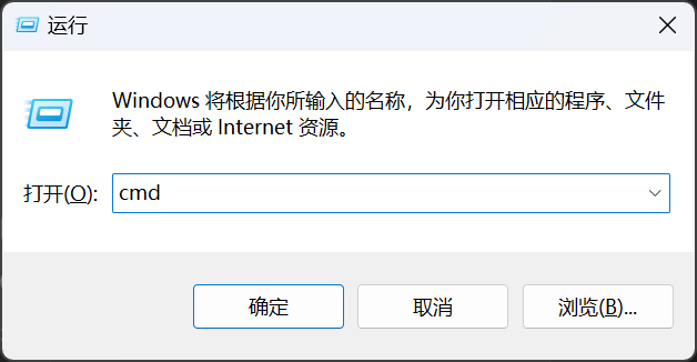 对于 Win 电脑,则应按下 Win+R,打开 “运行”,输入 “cmd”,按下 Enter 启动命令提示符