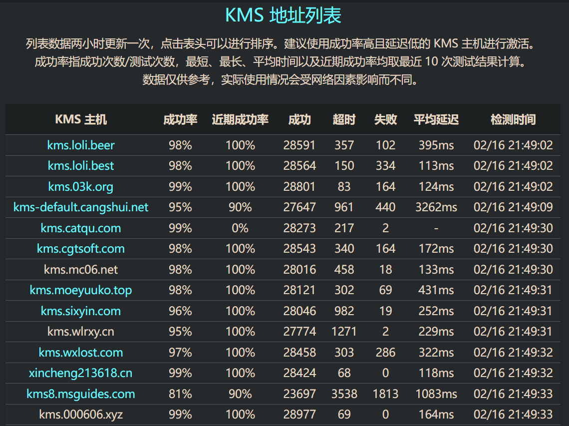 通过此链接可以查看所有可用的 KMS 地址及其实时可用性。