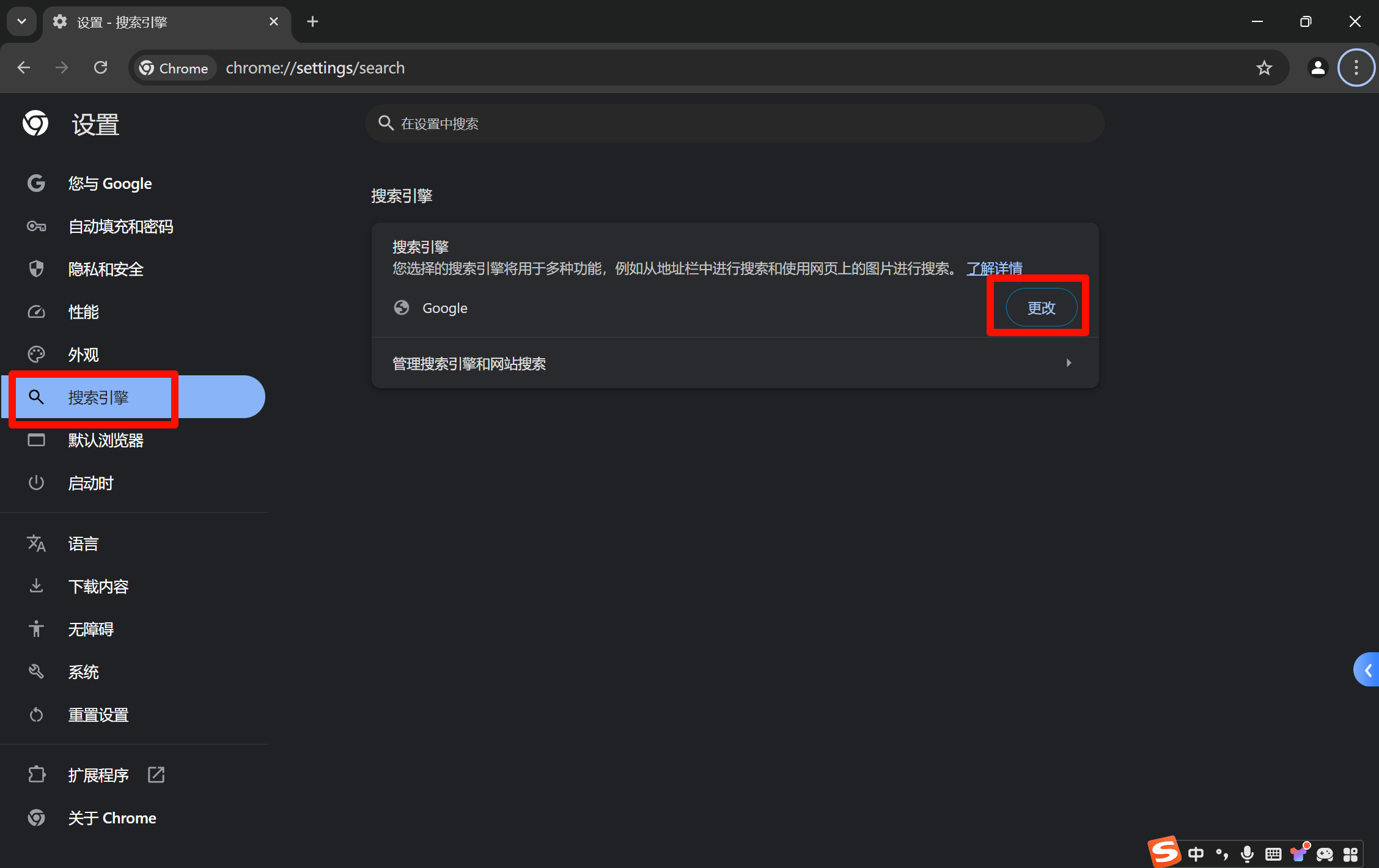 进入设置界面,点击 搜索引擎 → 更改