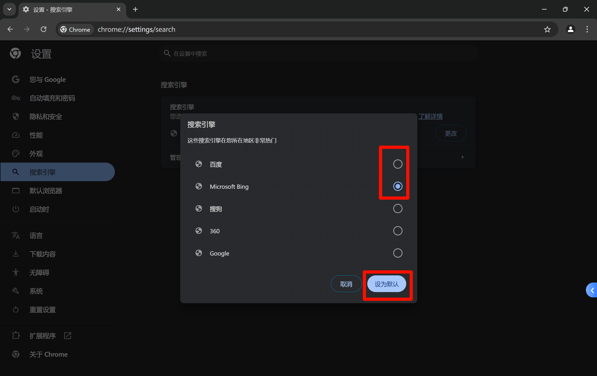 更改默认搜索引擎的方法