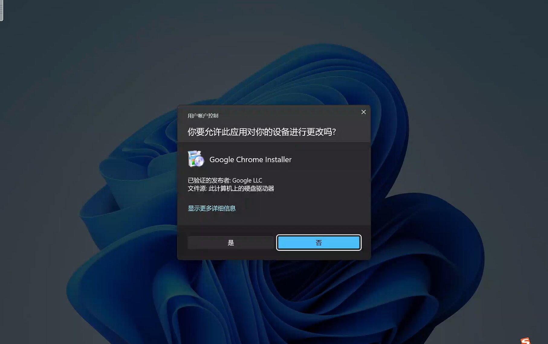 和安装Chrome浏览器类似,打开下载下来的安装程序,在弹出的授权窗口点击“是”进入安装程序。