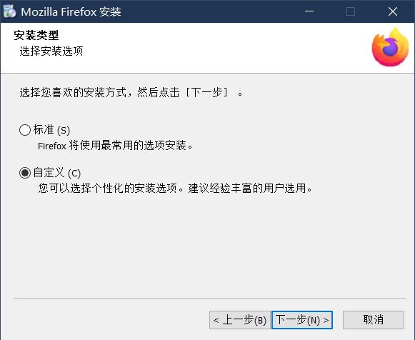 点击“下一步”,进入选择安装模式的界面,选择“自定义”