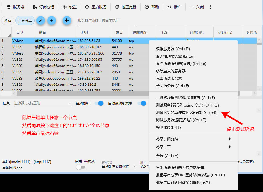 1.5 选择节点并将流量路由至v2ray