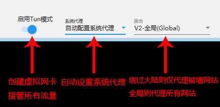 如果需要所有软件都进行科学上网,请打开”启用Tun模式”开关(需要管理员权限)。