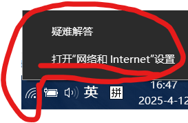 1. 点击桌面右下角的网络图标,选择“网络和Internet设置”