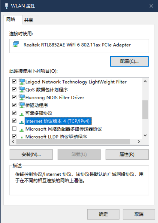 5. 找到“Internet 协议版本 4 (TCP/IPv4)”