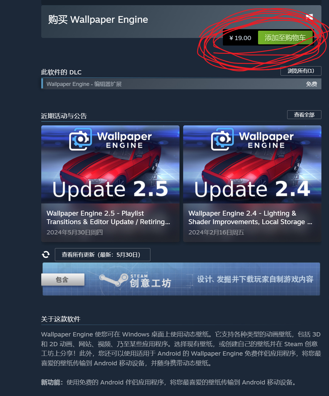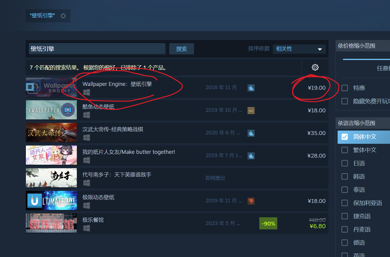 (图9 壁纸引擎搜索结果页。编者已经买了所以会显示“已在库中”,请忽略)